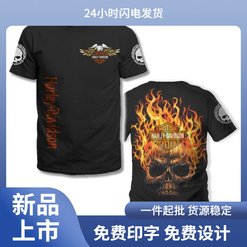 2023欧米の国境を越えた対外貿易の新型紳士服ハレバイク3dデジタルプリントのゆるい丸首半袖tシャツ