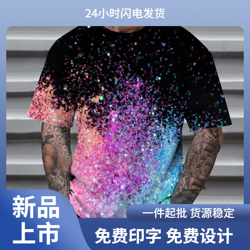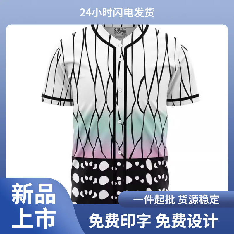 2024新型欧米男性対外貿易3dプリント夏裾ボタンゆるい野球服半袖tシャツメンズ夏