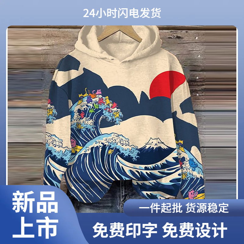 フード付き日本式民族古風2024秋の新型アオイ波3dプリントファッション青少年男女モデル