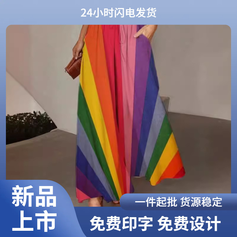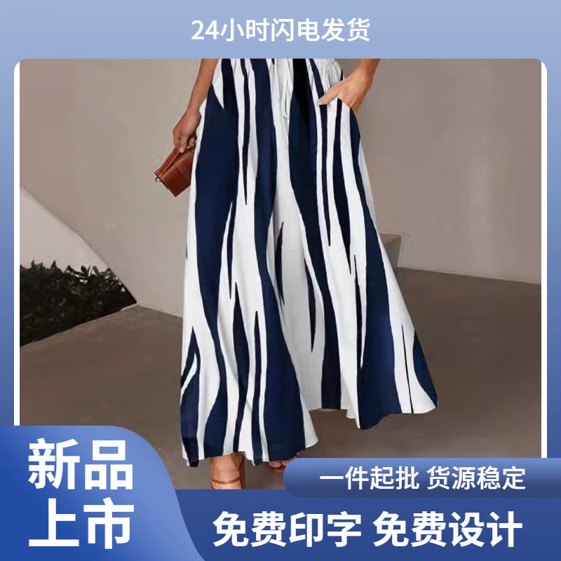 2023欧米の越境した夏の新型の婦人服の広い足のズボンはベルトの広い足の高い腰の長いスカートの女性を緩めます。
