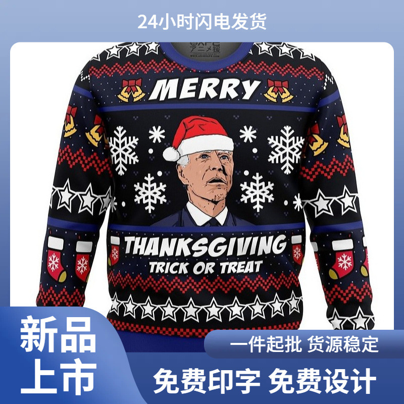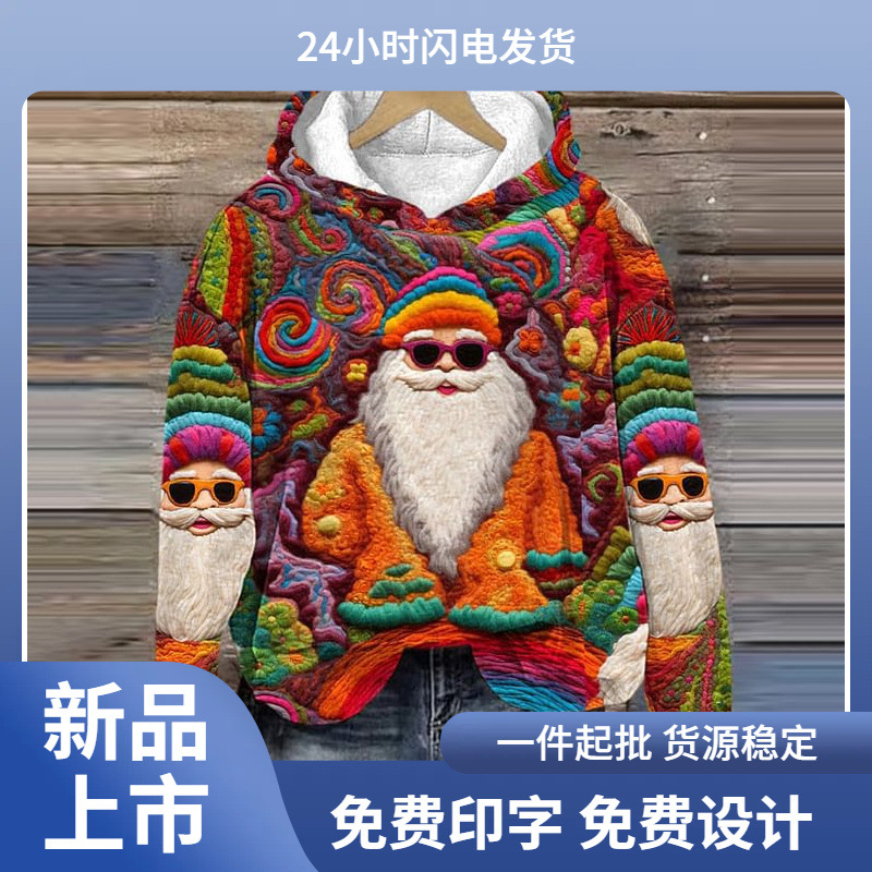 2024秋冬越境新作スウェット3dデジタルプリント女性クリスマス街頭ファッションラウンドネックシャツ上着