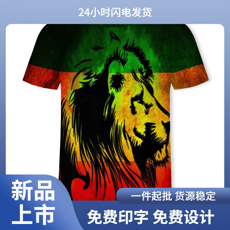 クロスボーダー夏新作ライオンタイガー3dデジタルプリントラウンドネックtシャツ半袖青少年ボトムシャツ欧米