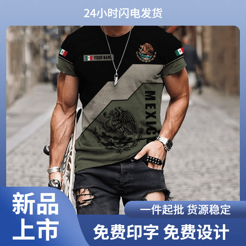 2023外国貿易メキシコの名前3dプリント半袖tシャツ欧米の大きいサイズの男性服1枚がレジャーを制定します。