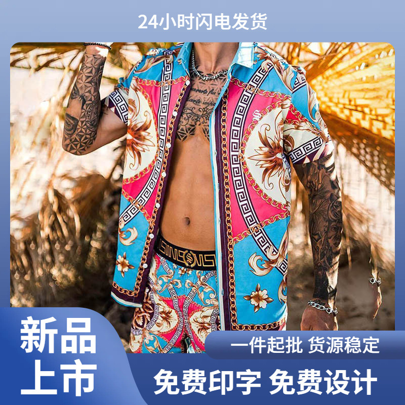 2021春アマゾンLAZADA越境青少年プリントショートパンツファッション速乾半袖カジュアルスーツ男