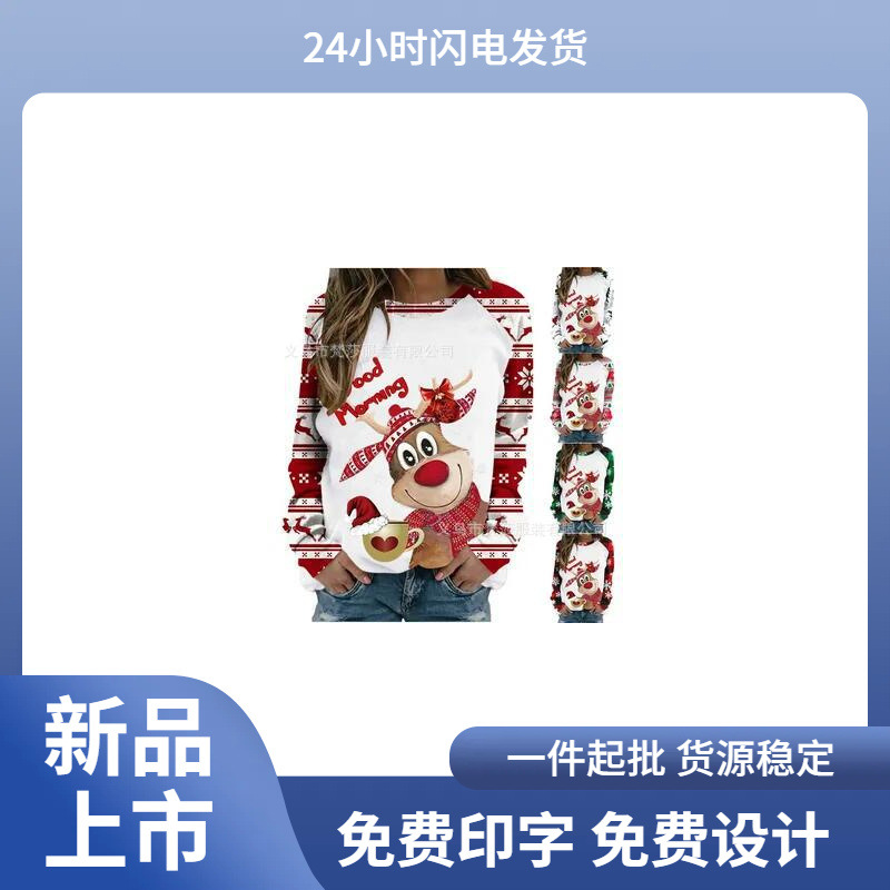 新型の外国貿易アマゾンの人気クリスマスの鹿の女性の衛衣秋冬の人気服の3dプリントの頭の婦人服