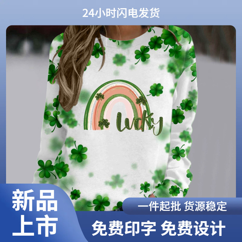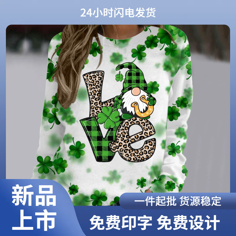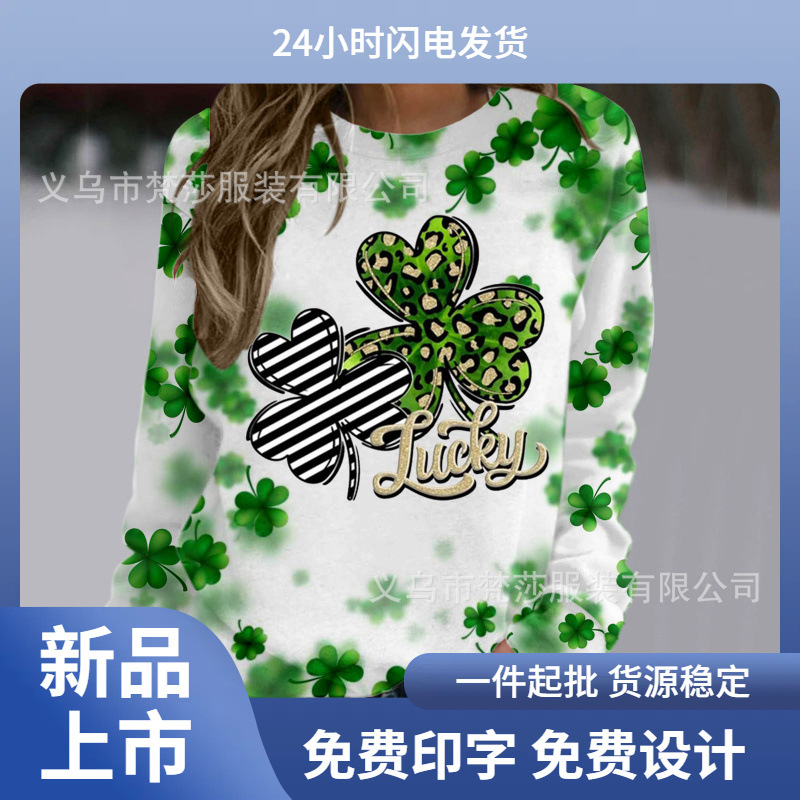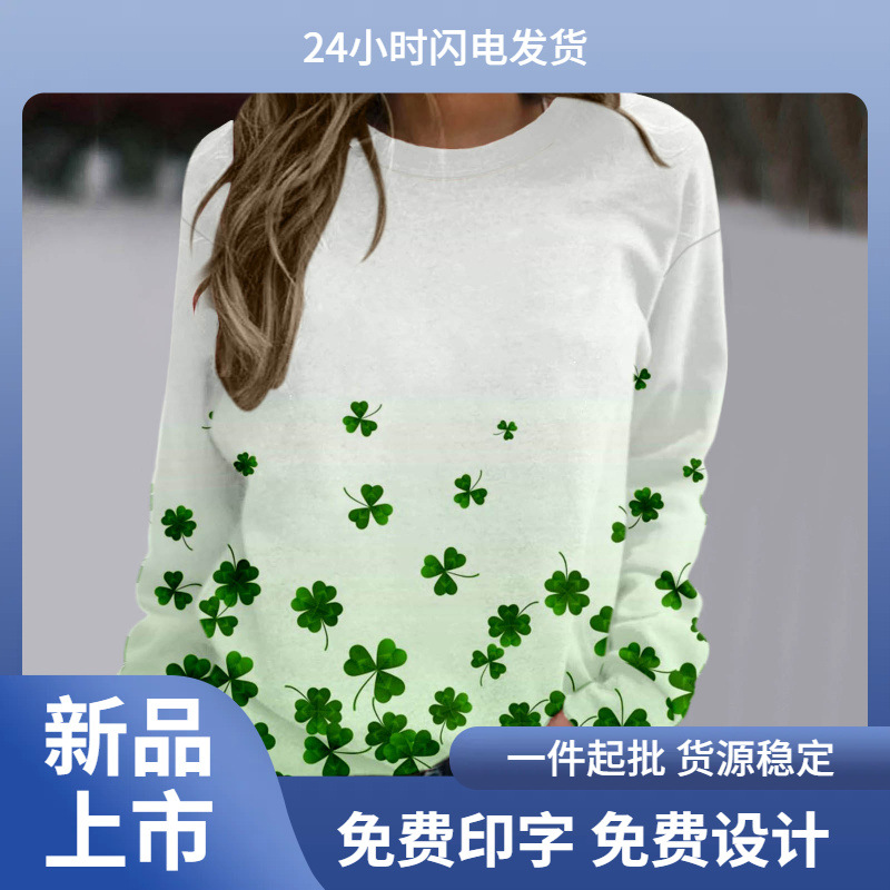 欧米の対外貿易のアマゾンのよく売れている独立駅の女性の衛衣の秋冬の服の3dプリントの頭の四つ葉の草の女性