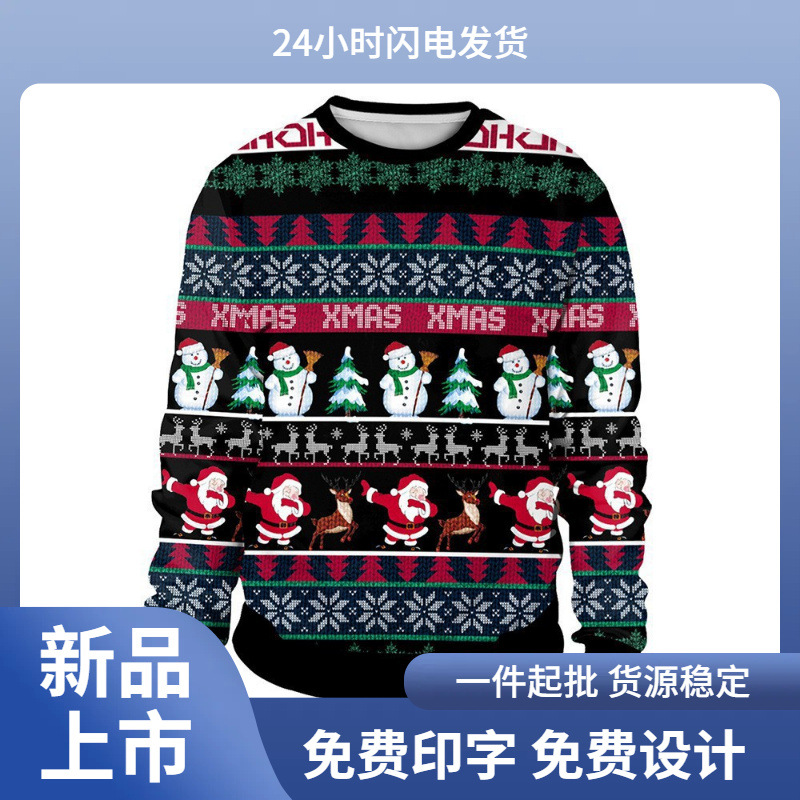 新型独立駅の人気クリスマス万聖は、秋冬服の3dプリントの丸首の長袖がゆったりしています。