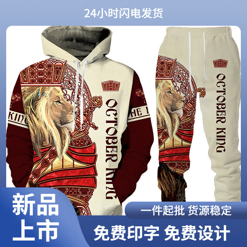 越境秋冬欧米の対外貿易の新型のスーツの3dライオンのプリントは帽子の頭の服の男性の潮流の服をかぶせます。