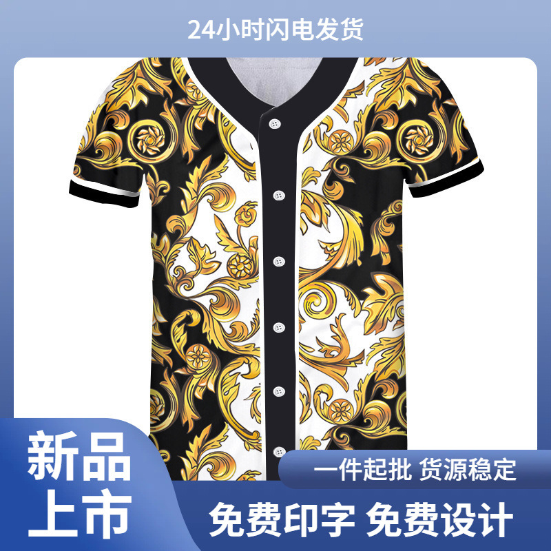 2023新型外国貿易速売通男性野球シャツ3dデジタルプリント夏半袖カーディガンデザイン花卉図