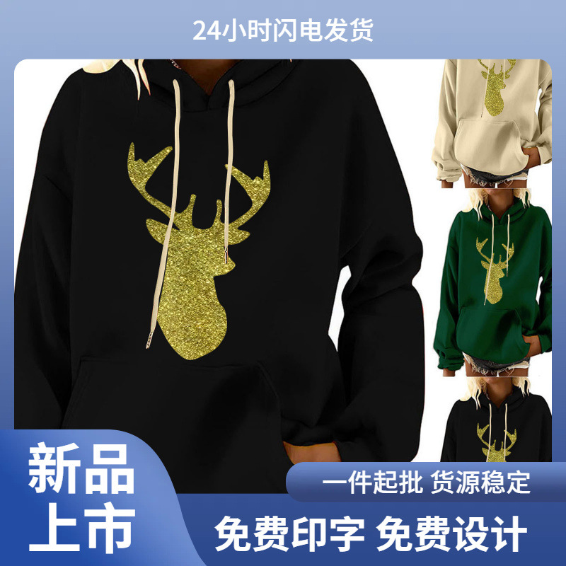 2023秋冬の外国貿易ファッションカジュアル新型クリスマスの鹿のプリントの衛衣のゆったりとした頭の大きいサイズの女性