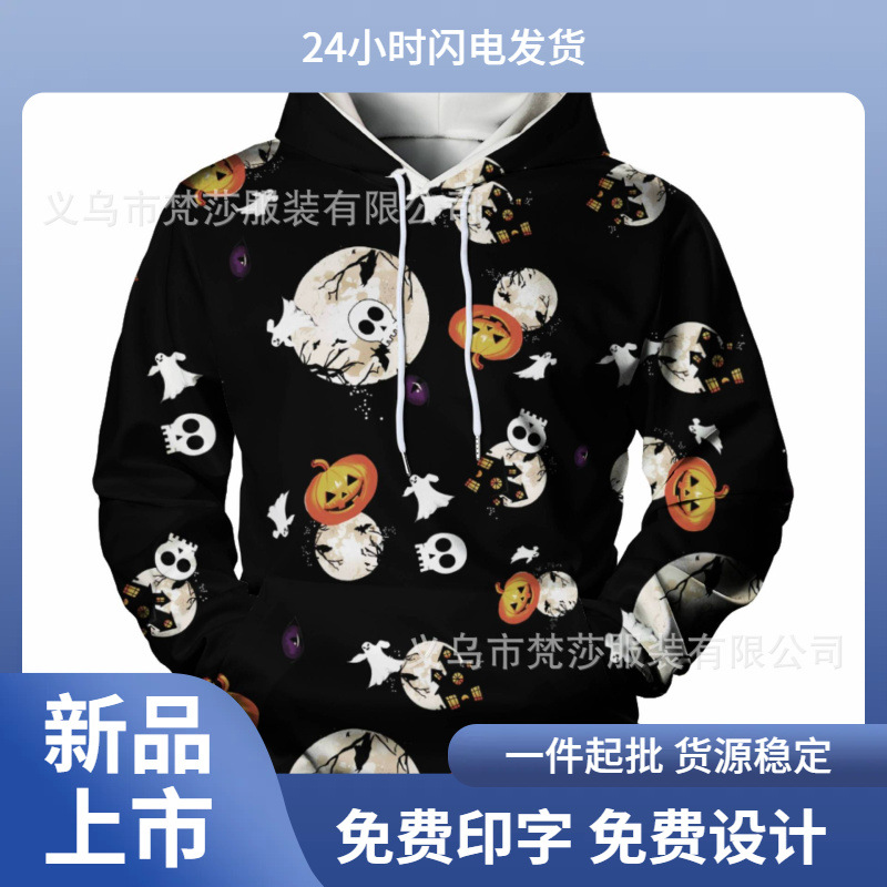 秋冬の対外貿易クロスボーダー2023年独立駅の新型ハロウィンプリントの上着の女性の頭をかぶせて帽子をかぶせます。