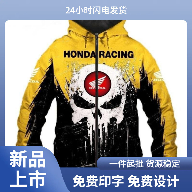 2023クロスボーダー欧米3dプリントスウェットアマゾンwish各種車標運動ファスナーフード付きスウェット