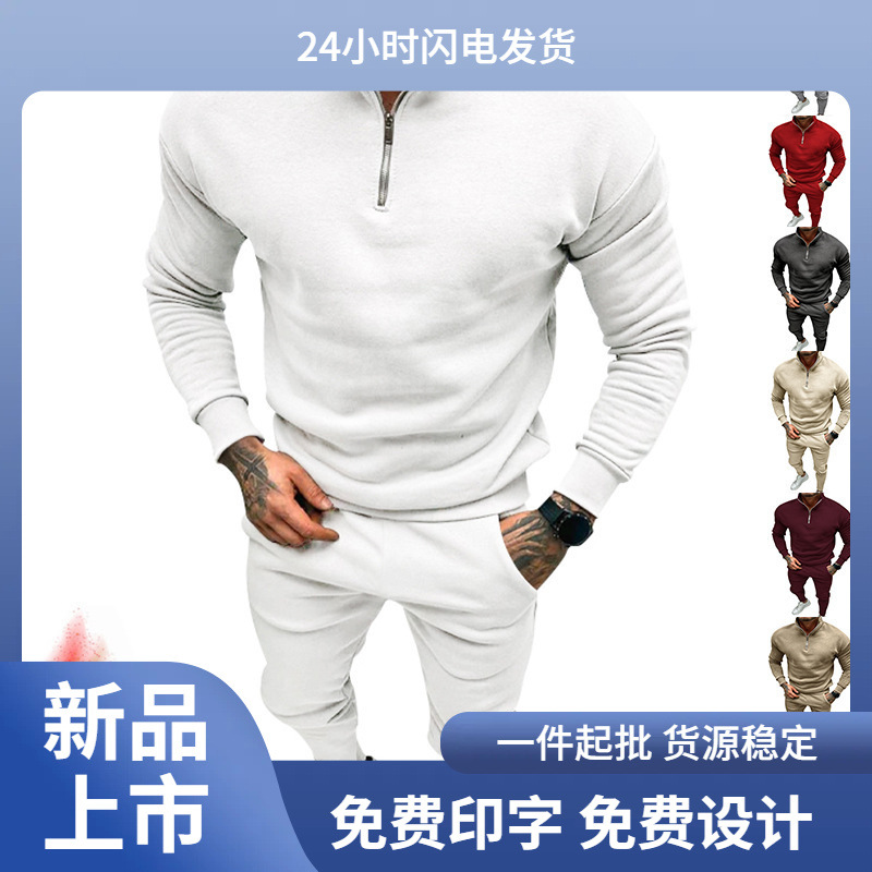 越境秋冬男服セットアマゾンの新型男性純色カジュアル加毛保温ファスナー男性式スポーツウェア