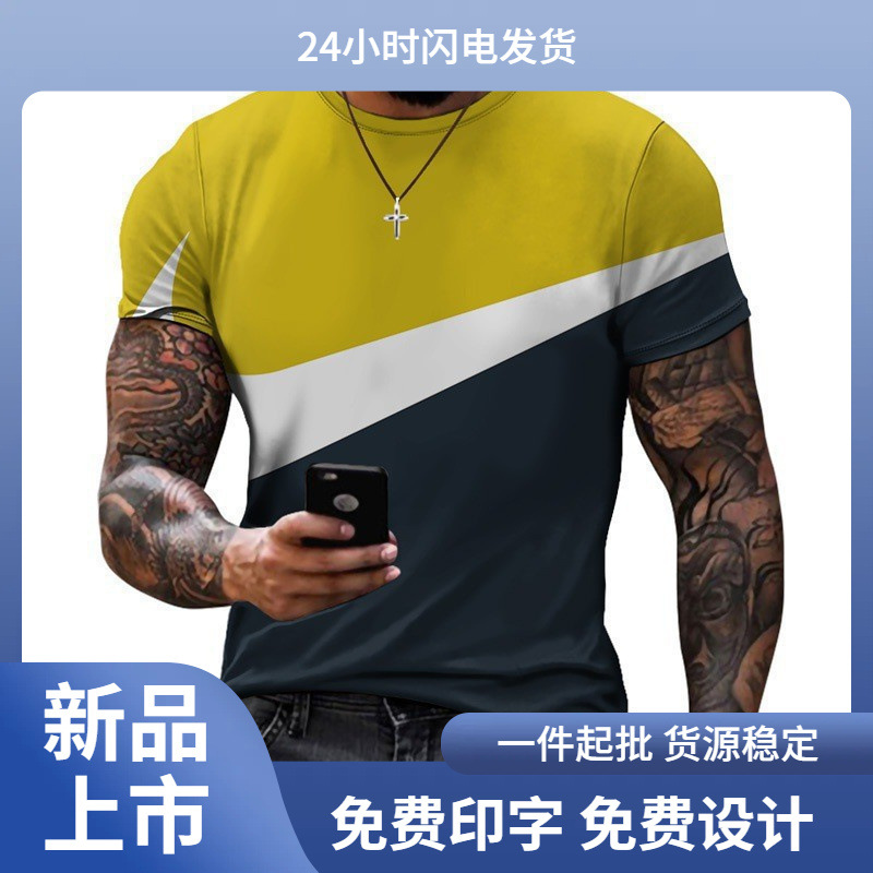 2023夏のヨーロッパコードクロスボーダー新型tシャツ3dデジタルプリントファッション男性丸首レジャースポーツ半袖