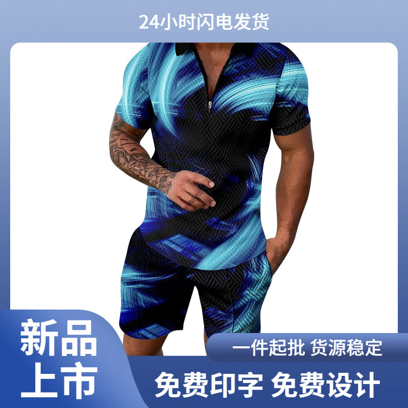 2023欧米独立駅カジュアルメンズ2点セット夏ビッグサイズ半袖ショーツランニングスポーツウェア