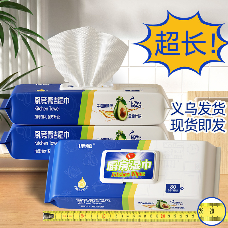 80は台所のウェットティッシュを引き出して、油汚れを強くして、ウェットティッシュをきれいにします。
