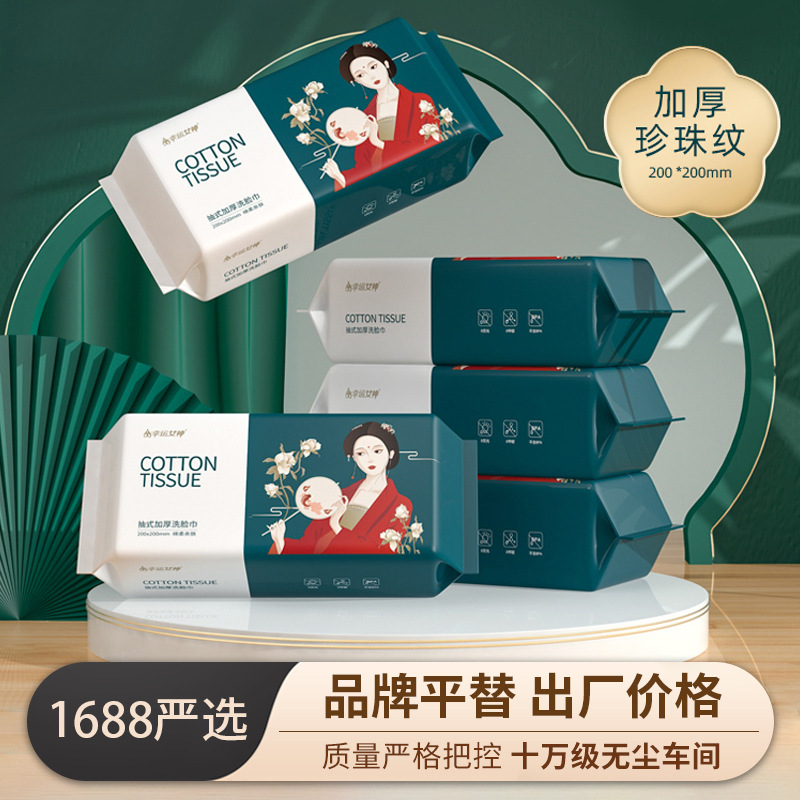 洗顔タオル使い捨て国潮風厚手洗顔タオル抽出式真珠紋化粧綿柔らかいタオル美容院卸売り