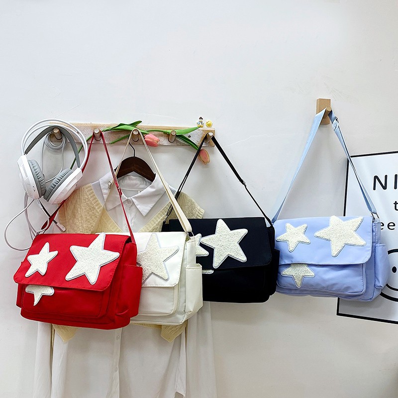 日系insカジュアル百合キャンバスバッグ大学生斜めショルダーバッグ女性の授業通勤大容量郵便バッグブーム
