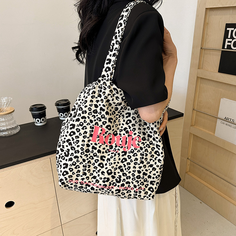 日韓ins小豹紋片肩斜めショルダーバッグ洋気女包学生百合布袋大容量ネット赤キャンバスバッグ