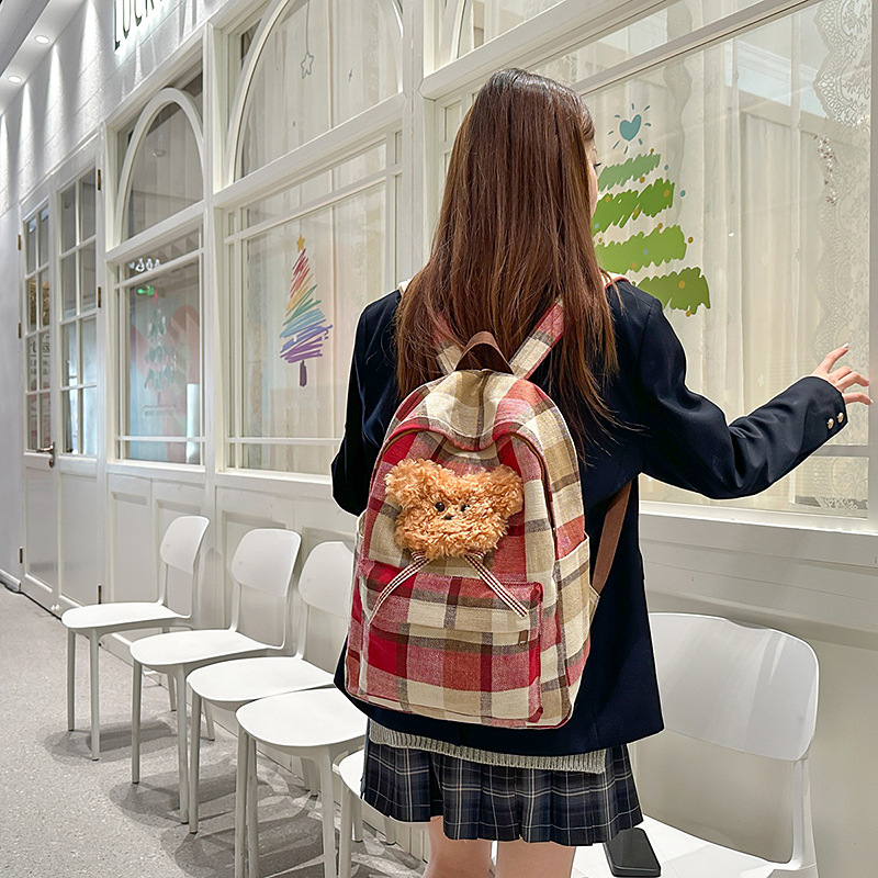 日本の市松模様のぬいぐるみランドセル、ファッショナブルで多用途なバックパック、森のレトロな中学生と高校生のバックパック