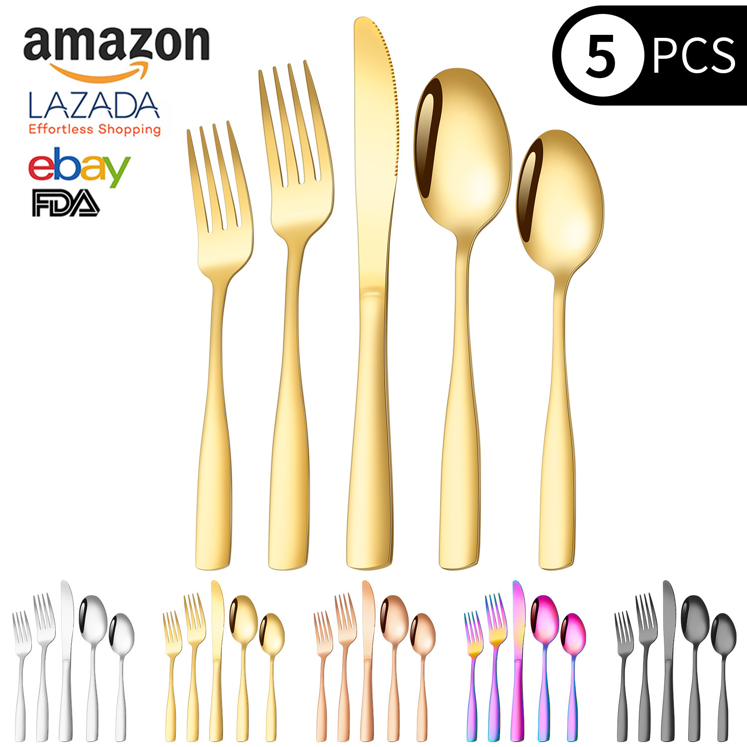 クロスボーダーステンレス角柄ナイフフォーク食器セット創意ステーキナイフフォーク角柄5点セット西食器ナイフフォークスプーン