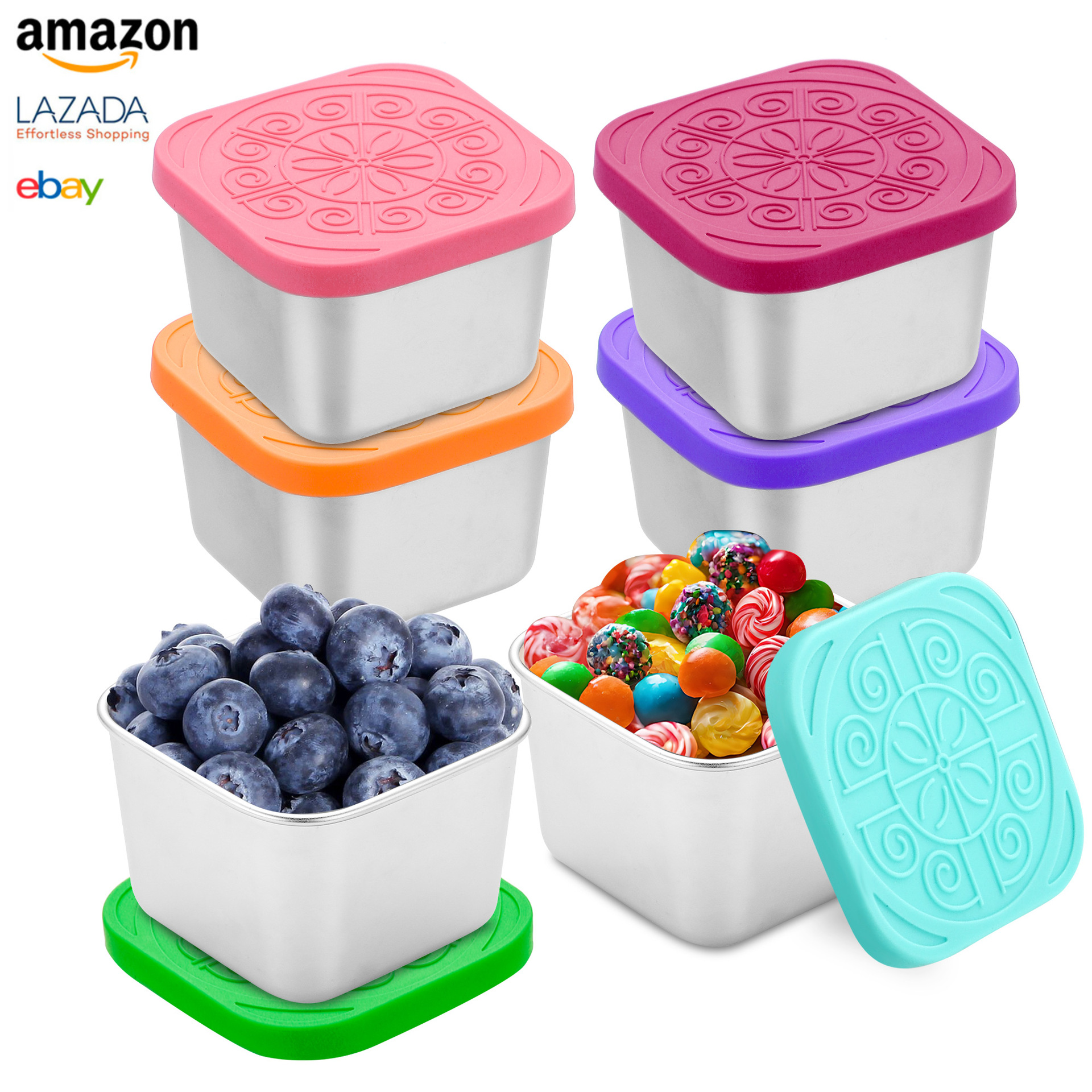 304ステンレス子供スナック収納ボックスシリコン蓋弁当8オンスディスペンサー皿密封ポータブル収納容器