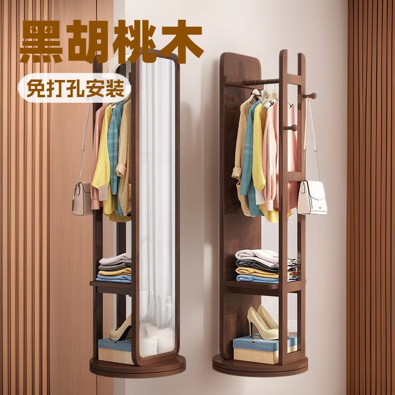 実木回転服鏡ハンガー一体家庭用縦型鏡床置き鏡寝室ネット赤全身服鏡