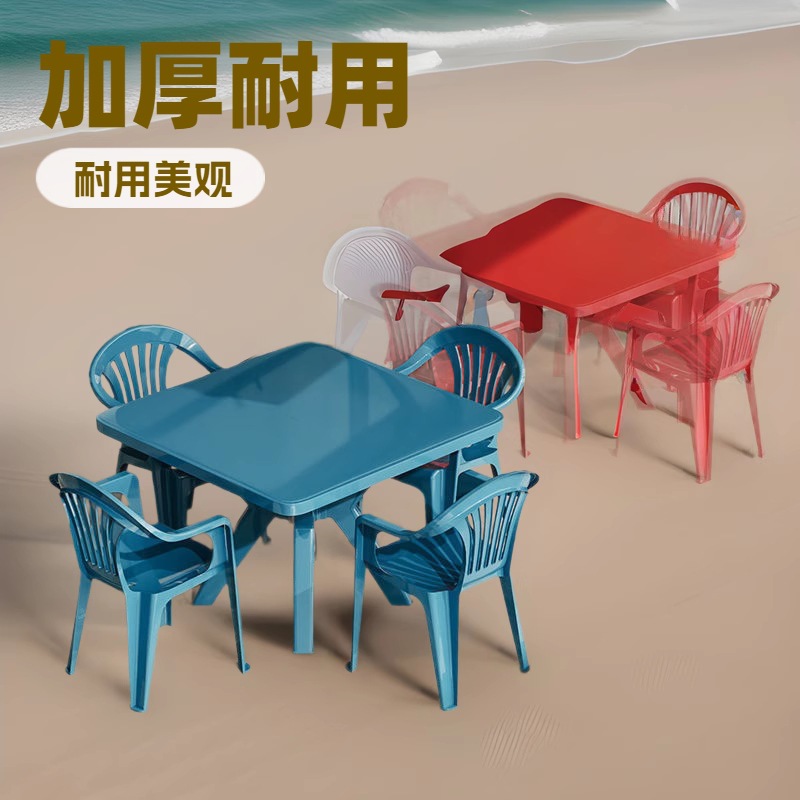 商業用厚みのあるホテルレストラン屋台耐久性のある屋外プラスチックテーブルと椅子セットダイニングテーブルと椅子のストールの組み合わせ