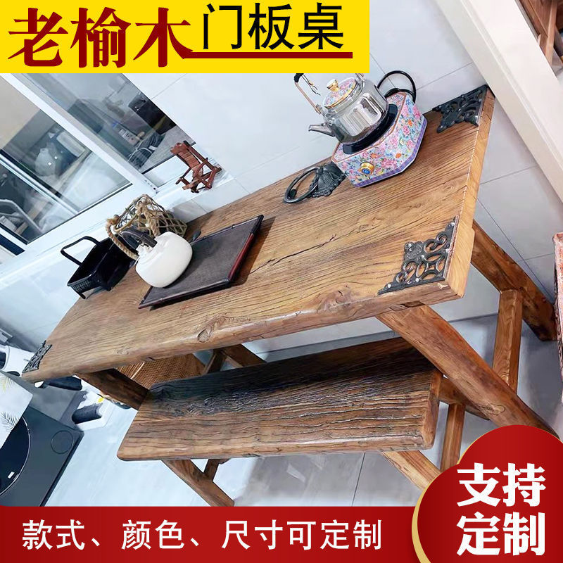 古いニレのテーブル無垢材ボードレトロティーテーブル風化テーブルスツールダイニングテーブル家庭用ログデスクトップバーテーブル民俗テーブル