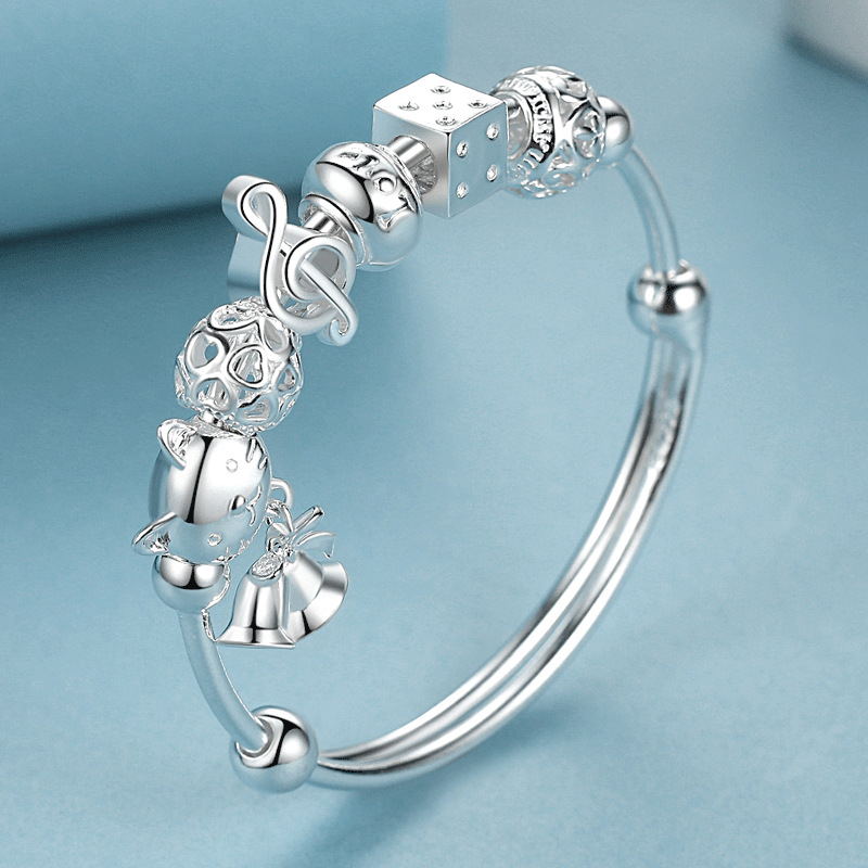 ファッションビーズブレスレット純銀999レディースkt猫透かし彫りビーズ音符アクセサリー銀飾り上品人気