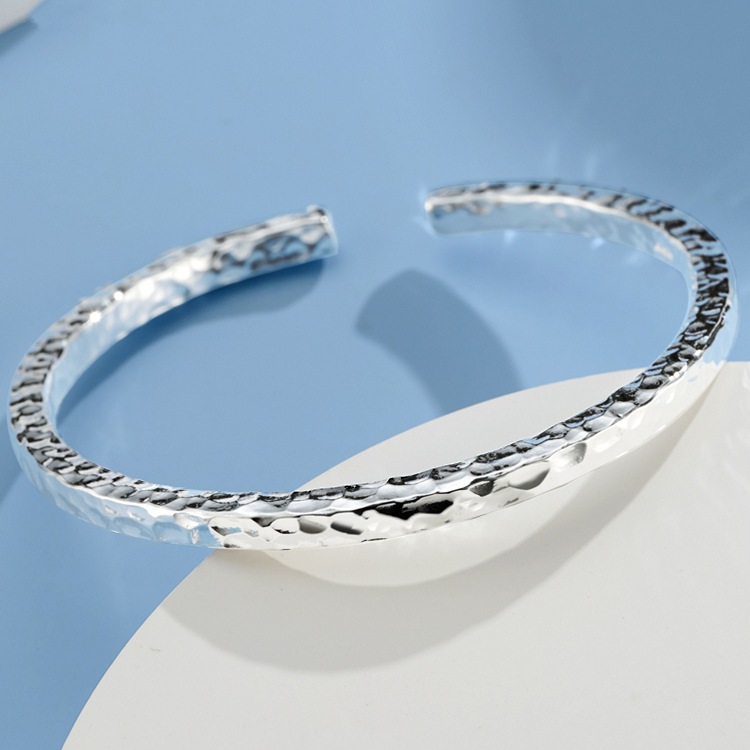 9999純銀のブレスレットの女性の四角形のハンマーの紋様の中実の足の銀のブレスレットの口の小さい大衆の若い金は彼女に送ります。