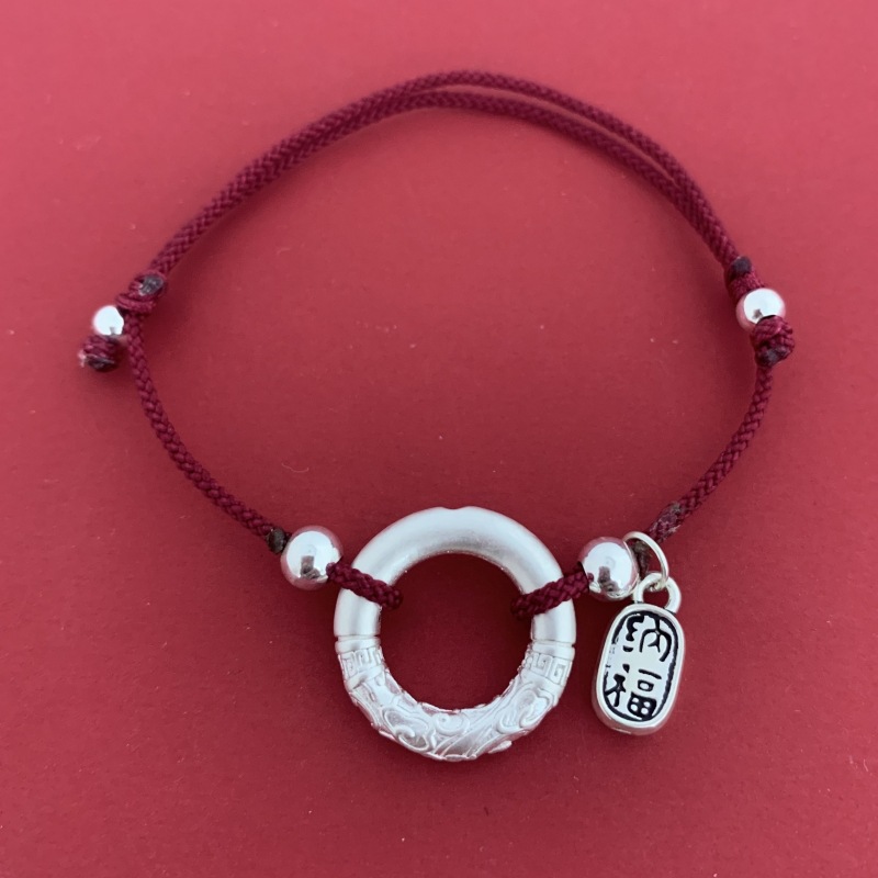 2024龍年純銀平安は赤い縄のブレスレットの女性の本命年の回転の玉を掛けます。