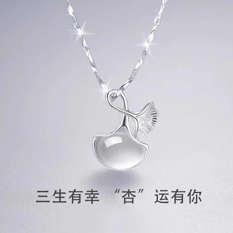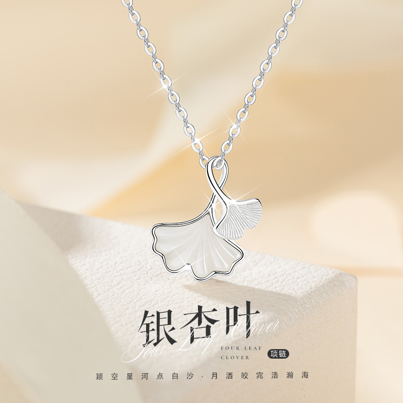 S925純イチョウの葉の白玉髄のネックレスの女性の軽豪華な大衆は娘の蜜の誕生日の彼女のバレンタインデーの小さいプレゼントを送ります。