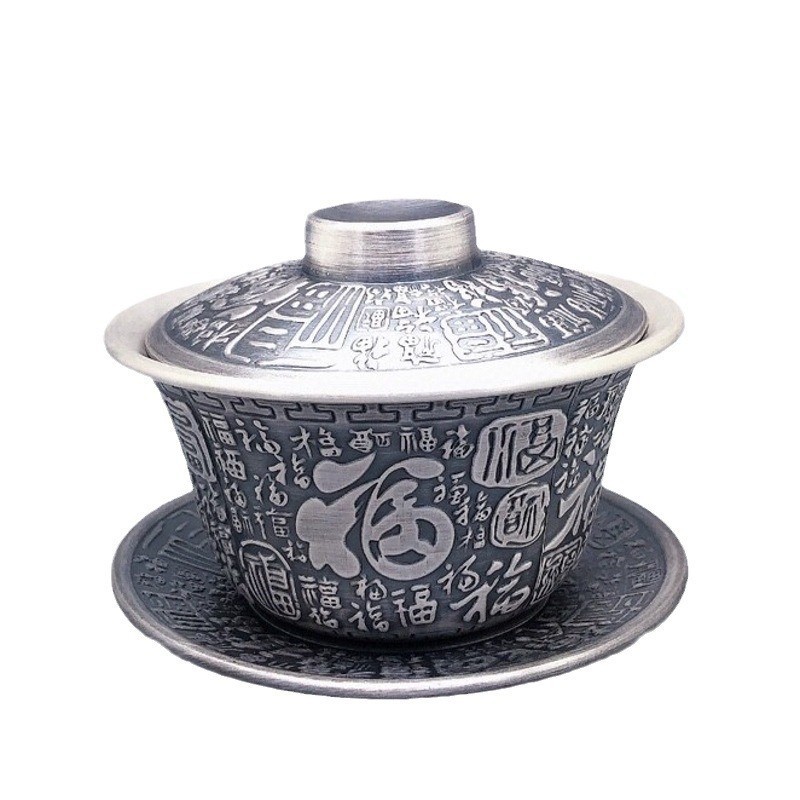 傾人城純銀999百福蓋茶杯銀茶碗工夫茶具単杯品茗杯煎茶器泡茶