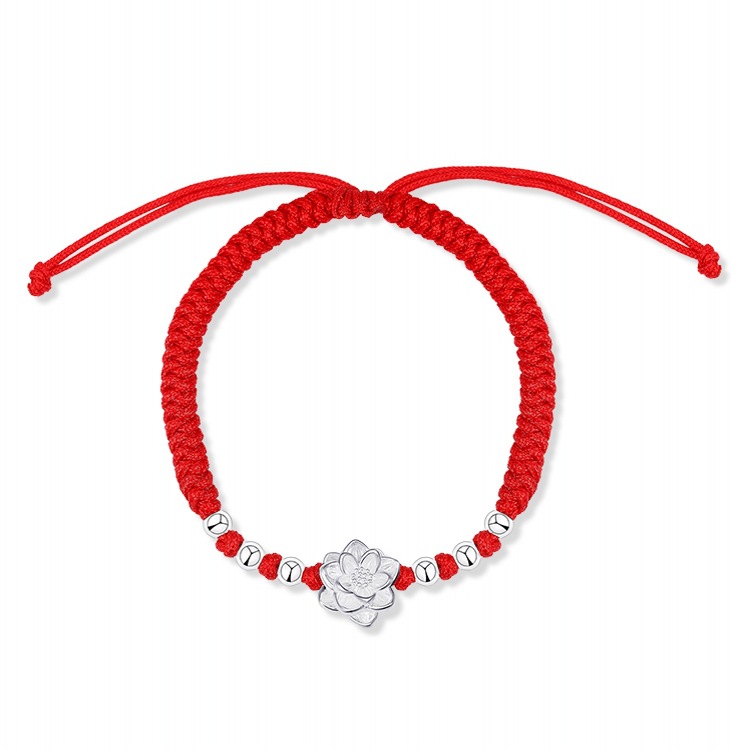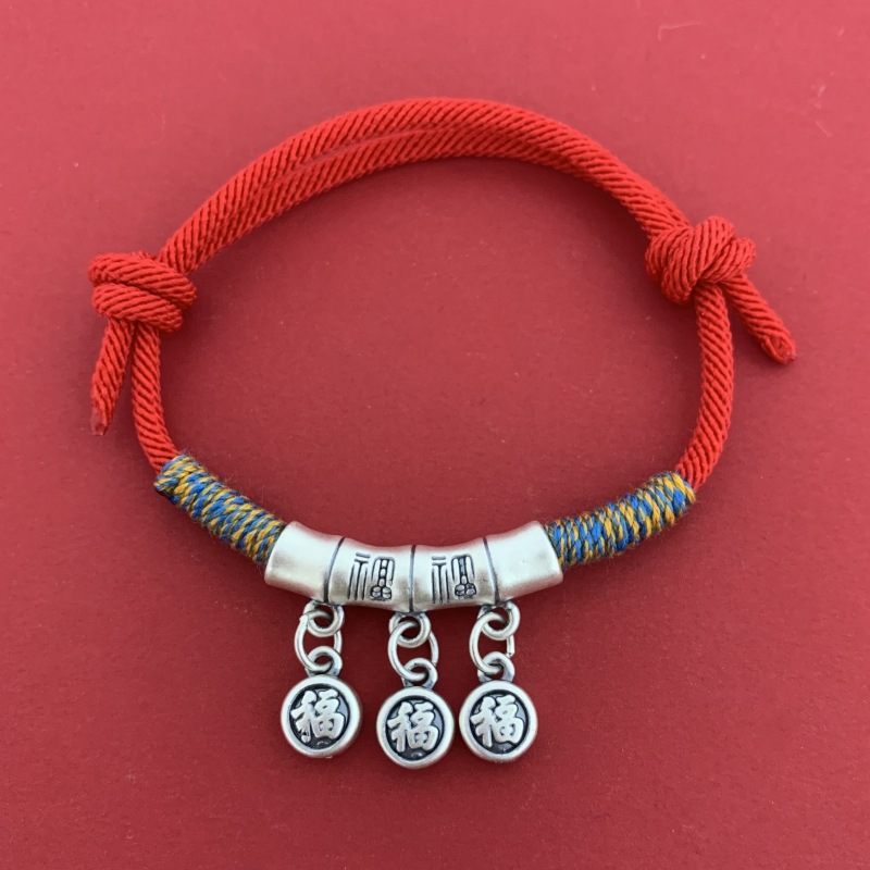 999純銀の竹の節の赤い縄のブレスレットの女性の新しい中国式の復古の輸送の編みの手の縄は秋冬の手の装飾品を調節することができます。