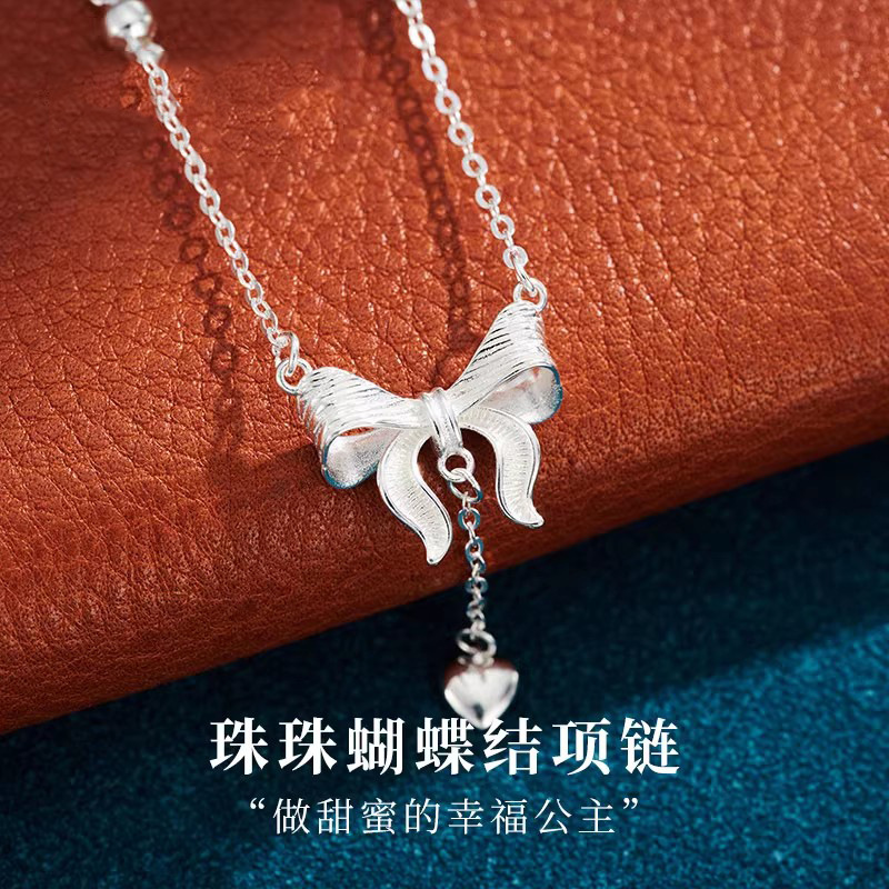 林髪銀飾りs990足銀ネックレス女性の若い鎖鎖蝶ネクタイ純銀ペンダントins風デザイン感