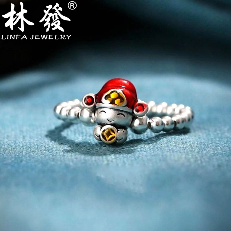 足銀999財神転運珠指輪女性文芸復古純銀手飾り民族風玉新年プレゼント