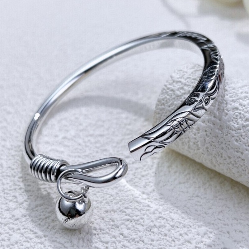 足銀9999鳳凰は日ごとに純銀のブレスレットの女性の中実の開口部の巻き尾の銀の腕輪の民族の風の手環の誕生日の贈り物です。