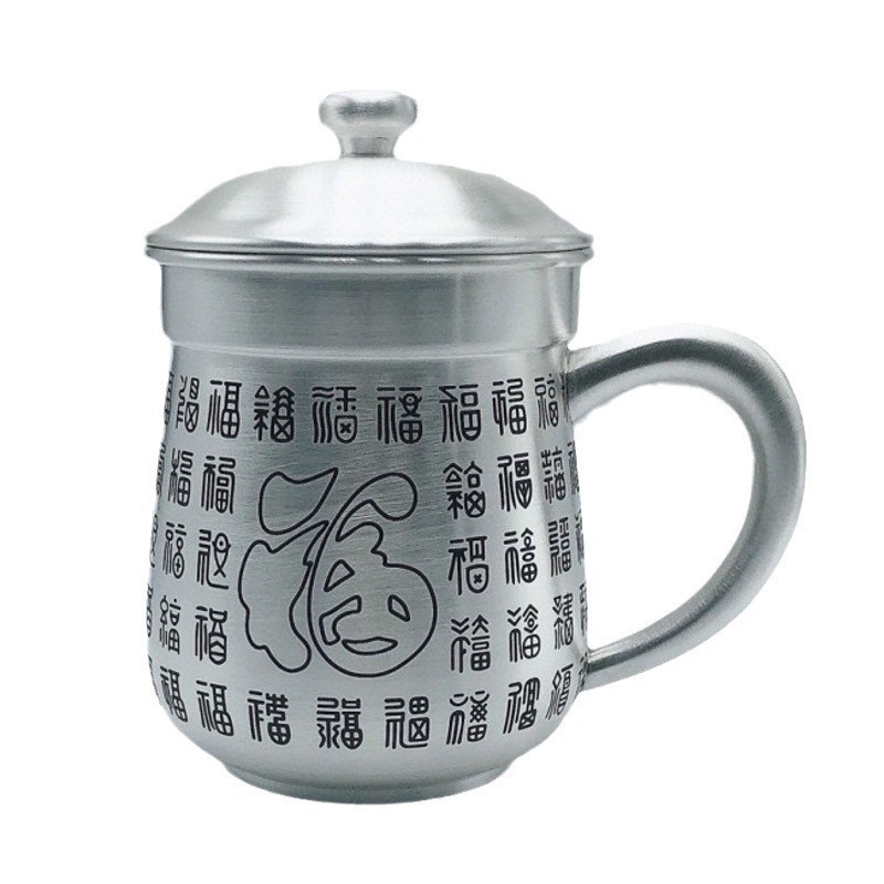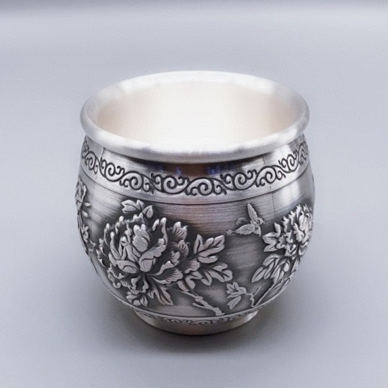銀のコップ999純銀の手は銀のコップの杯の大きいスローガンの家庭を彫って厚いお茶のかめの逸品を大きくします。