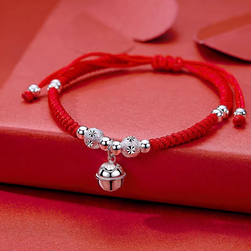 本命年鈴の赤い縄の足の鎖の女子学生の純銀のカップルの金のペアの腕輪は玉の誕生日のプレゼントを回転して彼女に送ります。
