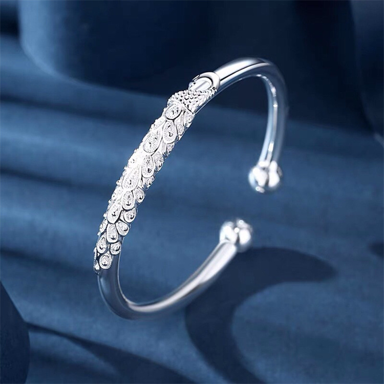 孔雀ブレスレット足銀999.9口は珠清新で甘い王女銀ブレスレットに彼女にプレゼントを贈った