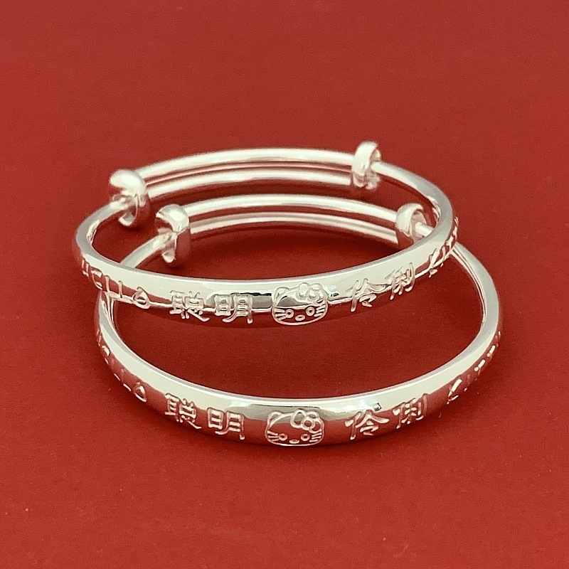 無邪気で活発なブレスレット伝福手環足銀999.9子供手飾り民族風子供新年満月プレゼント