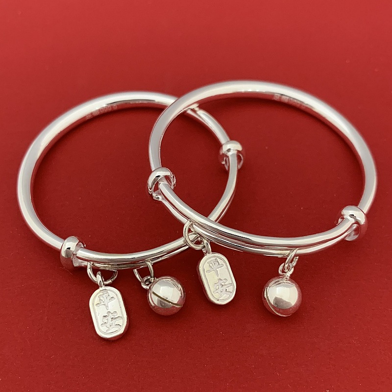 傾人城銀飾り純銀ブレスレット足銀999.9鈴光面円腹児童満月プレゼント