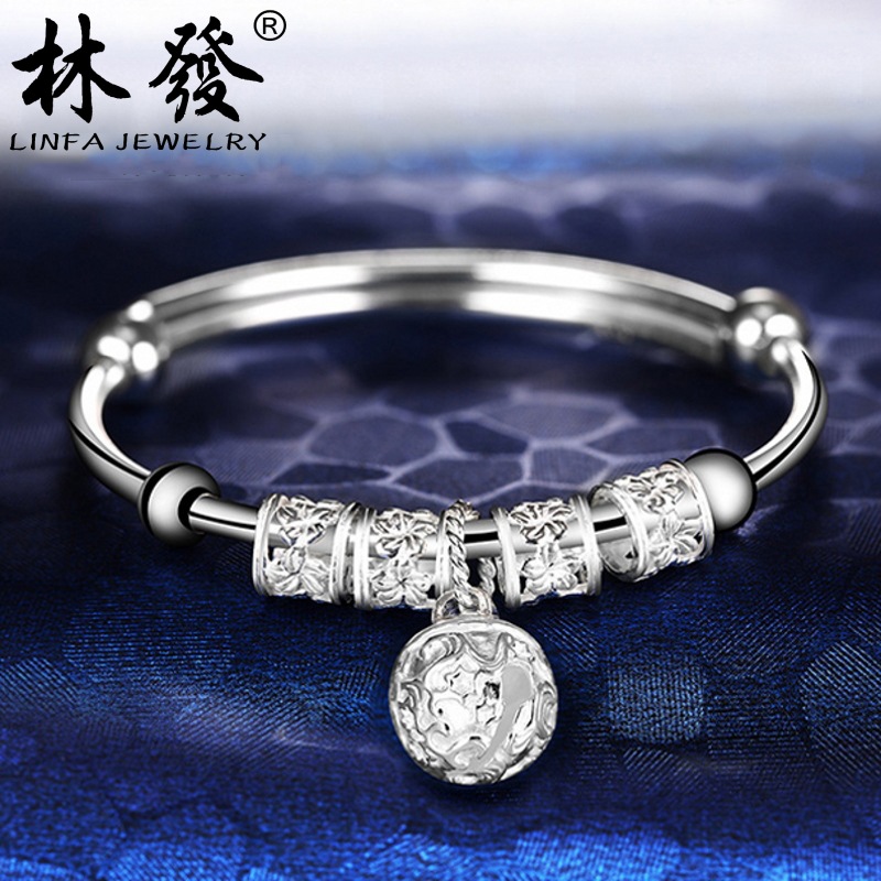 林発銀飾り990純銀ブレスレット女性韓国版ファッション甘いボールブレスレット開口幅版銀アクセサリーブレスレット