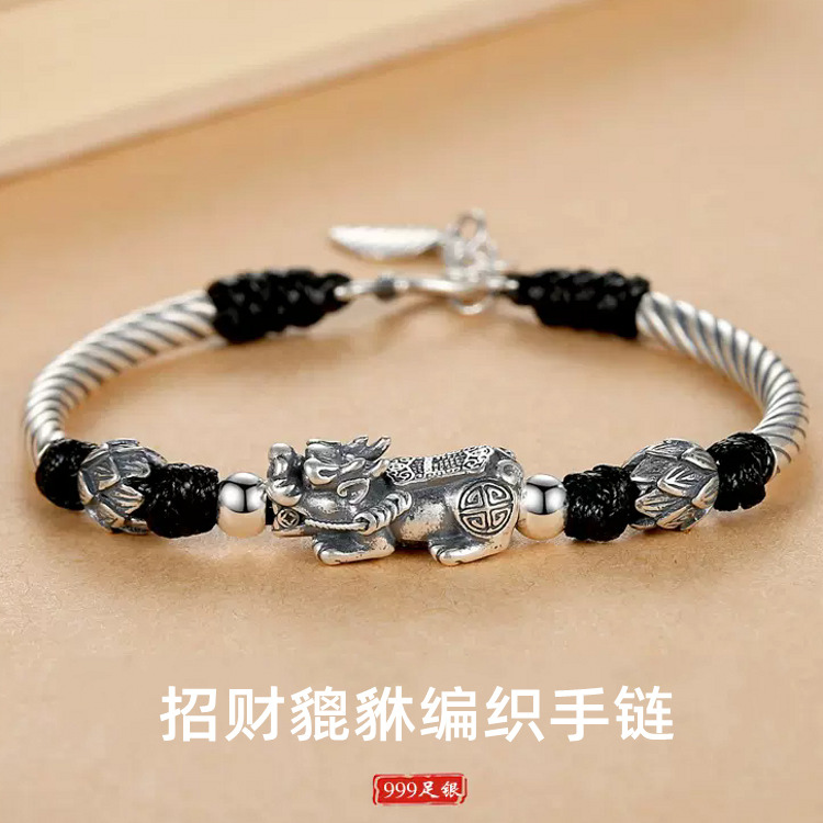 傾人城999足銀招財編みブレスレット男女純銀輸送国風潮純銀誕生日新年