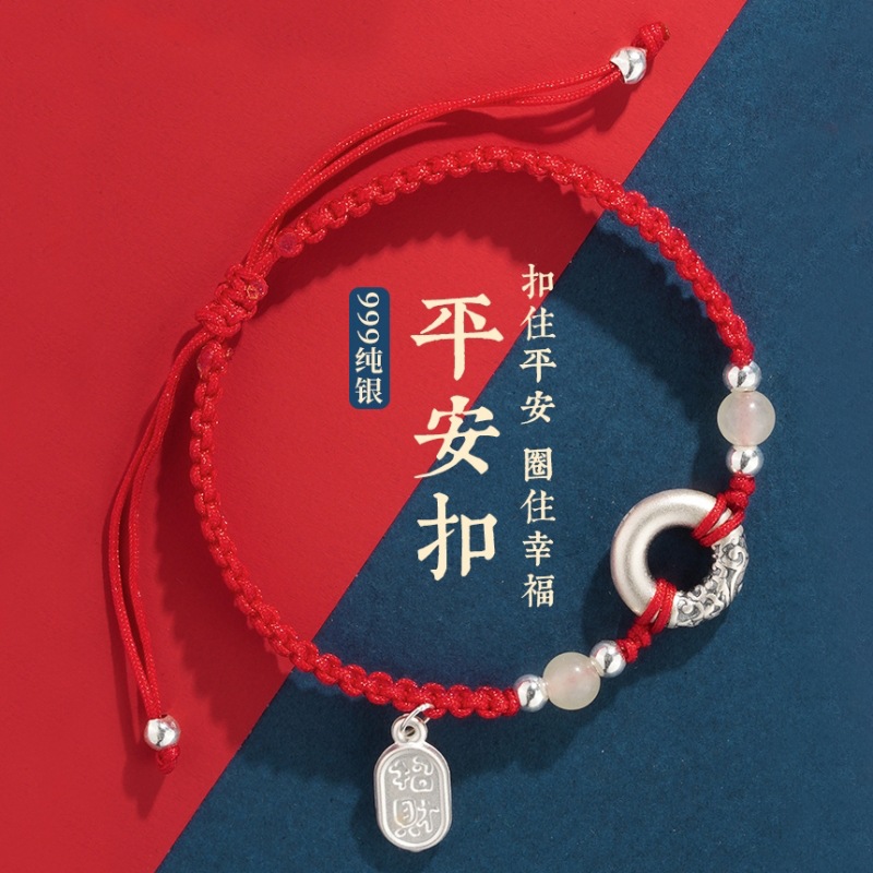 平安ボタンのブレスレットの女性は2024年に新型の赤い縄の手の縄を編んで縄の手を飾ってロープの七夕の祭りの贈り物を彼女に送ります。