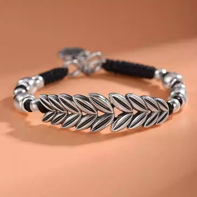 足銀999復古大麦ビーズ編みブレスレット男性女性潮百合復古民族風手作りアクセサリー