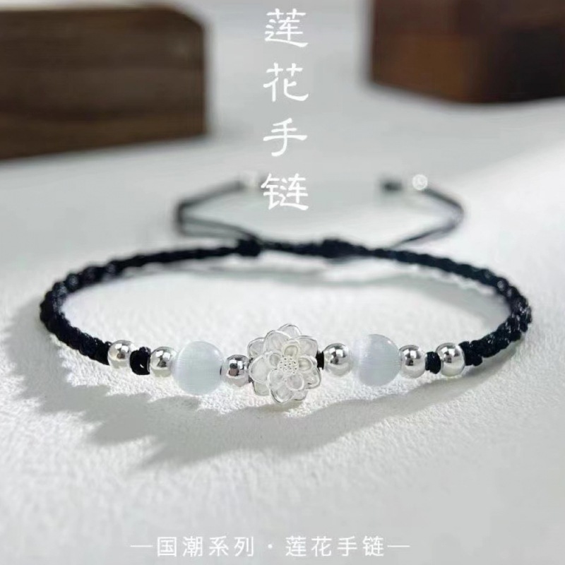 純銀蓮花999輸送編みブレスレット手綱古風手編み調節国風手飾りカップルins