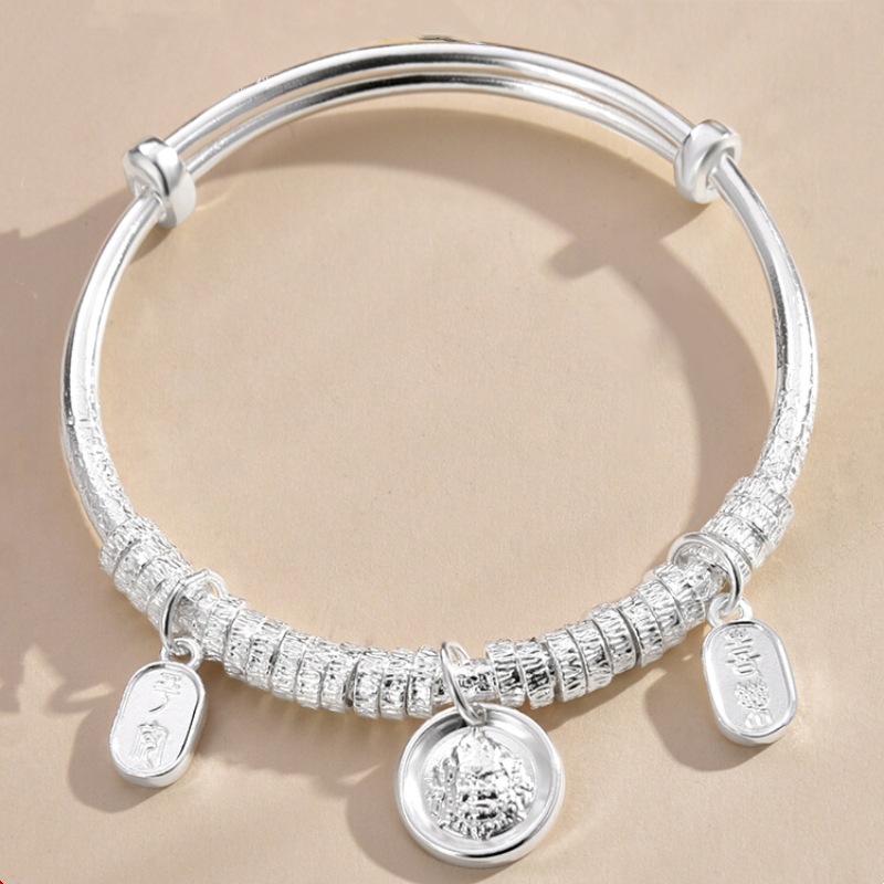9999純銀黄財神盤巻ブレスレット女性金中実新中国国風吉言足銀ブレスレット誕生日プレゼント