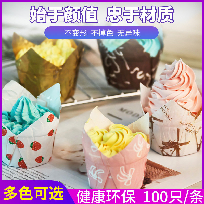 カップケーキ紙コップチューリップ麦芬火炎カップ焙煎馬芬杯金銀色淋膜花ケーキ紙ホルダー